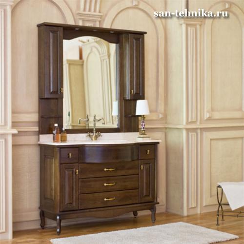 Покрытие трёхслойное влагостойкое, тонированный лак. Тумба комплектуется столешницей из натурального мрамора и фаянсовой раковиной Roca Foro или Gustavsberg 6147-98. Петли со встроенными доводчиками.