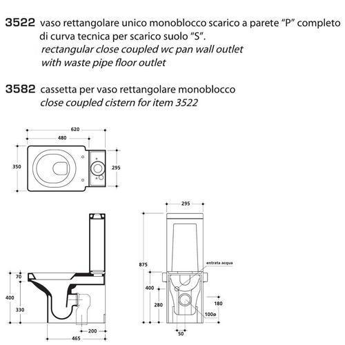 Унитаз-моноблок Kerasan Cento *арт. 352201 Унитаз напольный без бачка, без крышки-сиденья *арт. 358201 Бачок без механизма слива *арт. 750990 Механизм смыва 3/6 л для бачка Cento 3582, кнопка хром *материал: санфаянс *цвет: белый *крепление к полу