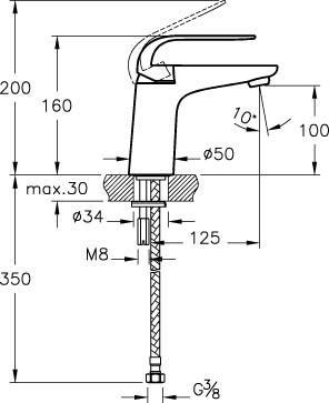 *арт. A40170EXP - Смеситель для раковины - Длина излива: 125 мм - Высота излива: 100 мм - Максимальная скорость потока воды: 9 л/мин - Вес: 1,76 кг