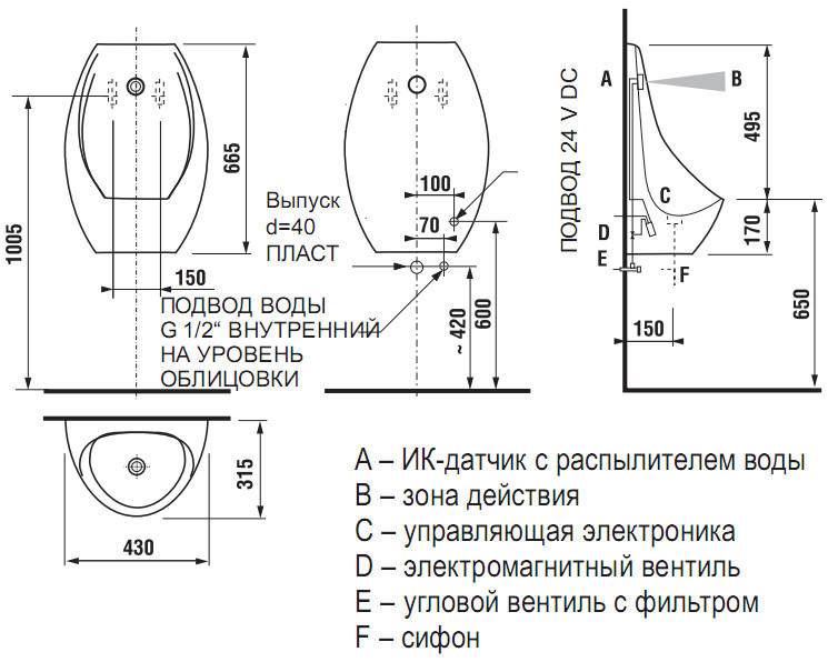 *арт. 4110.1 000 000 - Писсуар (уринал) с отверстием для вентиля