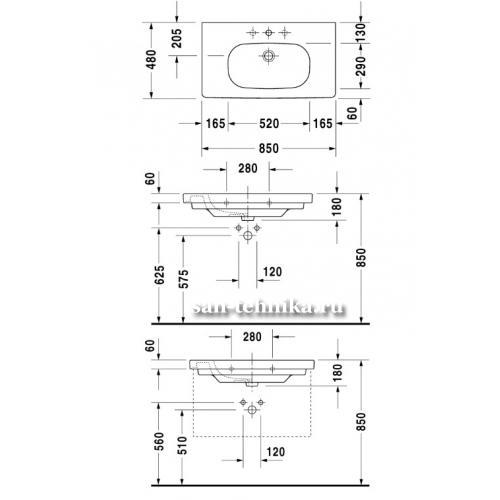 Главная > Раковины > Раковины Duravit > Раковина Duravit D-Code 03428500002 (85 см) для мебели