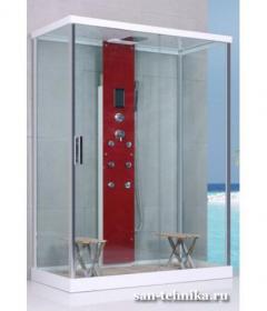 - Гидромассаж спины - Подсветка - Радио - Вентилятор - Верхний душ - Ручной душ - Аксессуары (2 складных сиденья, деревянная вставка в поддон) - Стальной профиль, хром - Стекло двери 6 мм - Центр. панель стекло 5мм - Сенсорный пульт