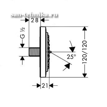 Боковая форсунка -широкая душевая струя диаметр 100 мм -технология AirPower -прямоугольная хромированная розетка -двухцветный вариант с белым душевым диском -защита от загрязнений QuickClean -поворот на 360` для регулировки угла наклона струи -без шарнира, угол струи 25` -расход воды около 4,5 л/мин при 0,3MPa