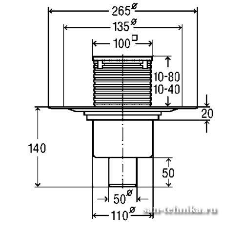 *арт. 583224 - Трап Viega Advantix для пола с "сухим" затвором и вертикальным отводом - Изоляционный фланец - Пропускная способность 0,40 л/с - Съемный "сухой" затвор - Гидрозатвор (высота водяного столба 30 мм) - Вращающаяся и регулируемая по высоте насадка (100 x 100 мм) - Решетка из нержавеющей стали (94 х 94 мм) - Предельно допустимая нагрузка K = 300 кг - Защитная заглушка - Шарнирный отвод - Рамка из пластмассы