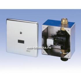 SLW 01NK - арт. 04015 - штампованная нержавеющая декоративная крышка с интегрированной электроникой, нержавеющая монтажная коробка с электромагнитным клапаном и с латунным резьбовым соединением, выпускной патрубок с уплотнением (соединение на пластм.трубу с внешним диаметром 40 мм), крепежный комплект