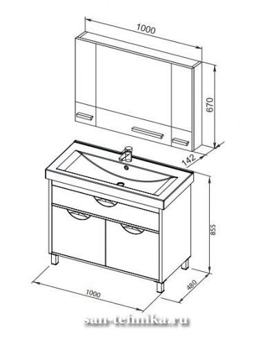 Состав комплекта: - зеркало - раковина (монораковина, фаянс) - тумба Размеры тумбы (ШxВxГ): 1000х814х480 мм Размеры зеркала (ШxВxГ): 1000х670х136 мм Размеры раковины: (ШxВxГ): 1000х450 мм Размеры пенала: (ШxВxГ): 400x1950x320 мм Материал: МДФ, ДСП *Подробней пеналы Гретта можно посмотреть здесь