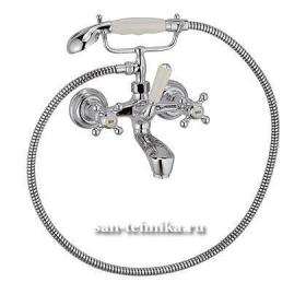 * арт. 514410520 - Смеситель для ванны и душа Kludi Adlon - двухвентильный, крестообразные рукоятки - настенный монтаж - каскадный аэратор M 24x1 - керамические кран-буксы 180` - переключатель душ/ванна - эксцентрики - с душевым гарнитуром - класс расхода воды BB - класс шума I