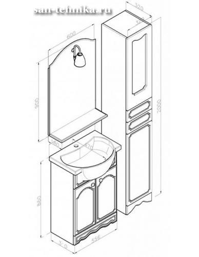 | Тумба Лючия 60 с раковиной Элегтя 60, цвет: белый | 556х470х860 | 6886 |