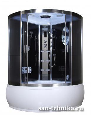 * арт. NG-918 - Гидромассажная душевая кабина: - задние стекла: черные - передние стекла: серые - полированный профиль - спинной массаж 6 квадрат. гидро форсунок - двойная полка - квадратная лейка + душевая штанга - верхнее диодное освещение - радио - сенсорный пульт - зеркало - дозаторы жидкого мыла - массажер ног - тропический душ