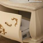 Модель Tessoro Donato изготовлена из массива натурального дерева с применением ручной резьбы. При финишной отделке мебель покрывается пятью слоями высокопрочной, водонепроницаемой эмали. Декоративные элементы на фасаде выполнены в золотом цвете. Столешница из натурального мрамора, раковина - керамическая. Тумба с одним ящиком. Мебель оснащена системой доводчиков.