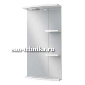 арт. Вн Ш1 Runo - Зеркало Азов 40 белое с козырьком, нижней полкой и двумя полочками справа Зеркало оборудовано трансформатором мощностью 60 Вт для подключения галогенных светильников со скрытым подключением электропровода, выключателем и розеткой.