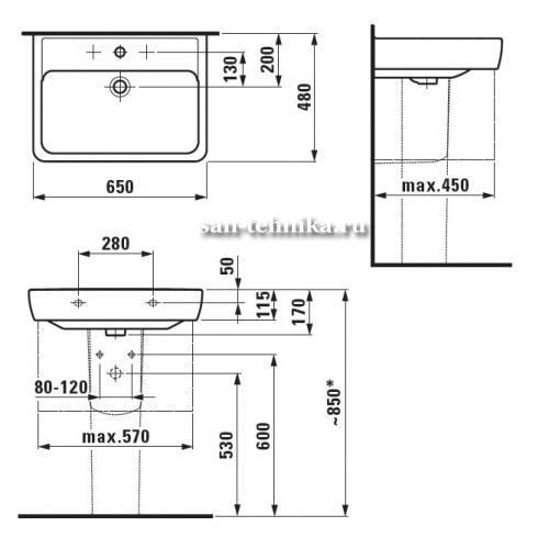 арт. 8.1895.3.000.104.1 - Раковина Laufen Pro - одно отверстие под смеситель - цвет: белый - вес: 19,1 кг