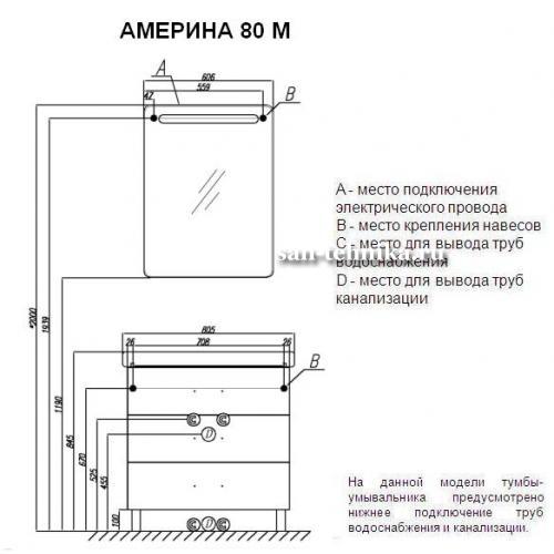 АМЕРИНА М - модель из коллекции АМЕРИНА, предусматривающая установку на ножки. Включает 3 вместительных ящика и комплектуется удобной прямоугольной керамической раковиной.