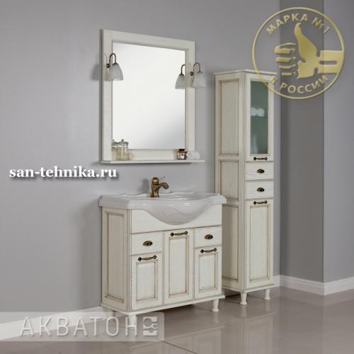 ФОТО мебели (откроется в новом окне) >> Коллекция "Жерона" выполнена в классическом стиле. Фасадные детали изготовлены в Италии по специальному заказу компании Акватон из массива дерева. Как и вся мебель Акватон, изделия коллекции "Жерона" изготовлены из влагостойких материалов. Все фасады установлены на петли передовой конструкции со встроенным механизмом плавного довода, позволяющие им бесшумно закрываться. Набор комплектуется раковиной Лорето (Сантек), практичность которой оценят ценители классических материалов. Помимо этого, предусмотрена возможность замены стандартной раковины альтернативными вариантами, изготовленными из доломита или белого мрамора. Комплект Жерона 105: