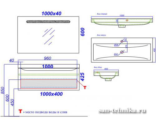 Характеристики комплекта - Умывальник из минерального мрамора - Влагостойкое зеркало с серебряной амальгамой - Освещение: люминесцентная лампа - Фасады и боковины - МДФ Finsa в пленке (Испания) - Ящик оснащён системой полного выдвижения и мягкого закрывания Blum (Австрия) и усиленными навесами Cаmar (Италия) с ответными планками - Внутренняя расцветка ящиков "под ткань" - Flor textil - Зеркало может крепиться как горизонтально, так и вертикально Дополнительные фотографии