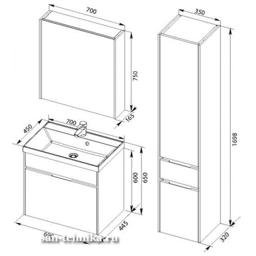 | 00180123 | Набор мебели Латина 70 с 2 ящиками и раковиной-столешницей Орлеан (180123) | 32870 |