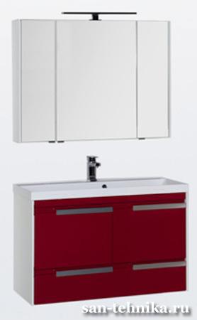 Акванет Тиволи - новая коллекция мебели для ванных комнат, выполненная в стиле модерн. Комплекты отличает "свежая" стилистика и лаконичность, умело подчеркнутая элементами внешней фурнитуры. Ещё одной зрительной доминантой является цветовая гамма, представленная сочетаниями белого, черного и бордового, на фоне которых хромированные поверхности придают моделям более изысканный и законченный вид. Приятной новостью для ценителей напольных модификаций тумб является возможность дополнительной комплектации специальными ножками. Aquanet Тиволи 100 белый глянец, фасад бордо (00180562) - зеркальный шкаф с тремя дверками и двумя полками (1000x165x750 мм) - тумба с тремя ящиками и раковиной из литьевого мрамора (1000x450x650 мм)
