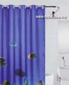 *арт. NFD-109 - Штора для ванны Bath Plus Design Studio - С большими кольцами - Рисунок: Saltwater fish (морская рыба) - Цвет: синий