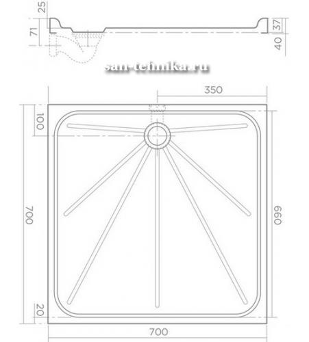 *арт. 709040200 - Душевой поддон Teka - Цельноштампованный душевой поддон из нержавеющей листовой стали CrNi 18/10 (AISI-304), толщина 1 мм - Для встраивания или поверхностного монтажа - Слив 43 мм - Антискользящее напыление - Матовая поверхность - Вес 5.50 кг