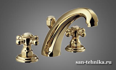 * арт. 510434520 - Смеситель для умывальника Kludi Adlon, латунь - двухвентильный, крестообразные рукоятки - монтаж на три отверстия - каскадный аэратор M 24x1 - керамические кран-буксы 180` - донный клапан G 1 1/4 - соединительные напорные шланги G 1/2 x G 1/2 x 300мм - класс расхода воды А - класс шума I
