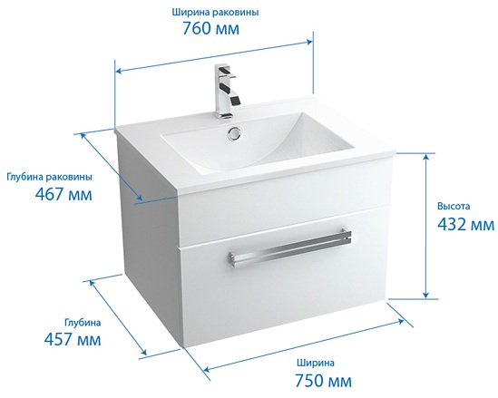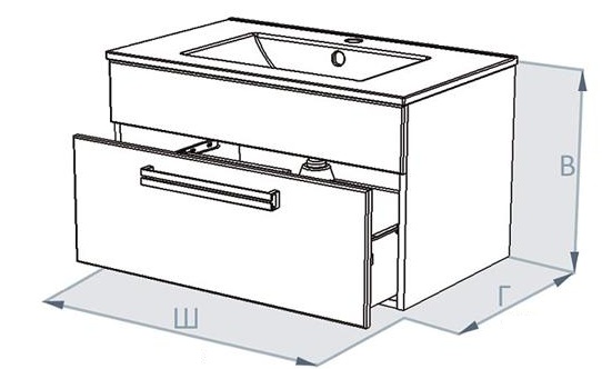 * арт. 004.32.0750.302.02.04.U - Подвесная тумба Тритон Ника-75 с одним ящиком