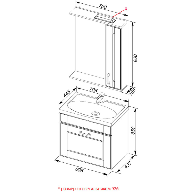 Комплект мебели Aquanet Рондо 70 белый (1 ящик) - один из многообразия конфигураций коллекции «Рондо». Он включает в себя подвесную тумбу с одним широким выдвижным ящиком и зеркало с узким шкафчиком. Корпусные части тумбы и зеркала выполнены из влагостойкой ЛДСП с тщательно прокрашенными специальной краской деталями, не позволяющими влаге проникнуть внутрь и повредить мебель, фасады – из МДФ. Изысканность фасадной части придает глянцевая поверхность с точеным рисунком в виде прямоугольника. Особого внимания заслуживает внутреннее устройство тумбы. При открывании ящика внутри обнаруживается еще один с разделителями, которые образуют удобные пространства для хранения. Ощущение такое, что ящики вложены один в другой, но при этом они имеют самостоятельные зоны хранения. В них найдется место как под высокие емкости, так и для хранения различных мелочей. Элегантная керамическая раковина завершает образ тумбы в стиле модерн. В комплекте используется качественная фурнитура. На выдвижном ящике тумбы и распашной дверце зеркального шкафчика установлены доводчики, способствующие плавному закрыванию, так что использование изделий будет подобно размеренной музыке без громких хлопков и стуков. На зеркале предусмотрена подсветка. На боковой стенке зеркального шкафчика монтирован выключатель.