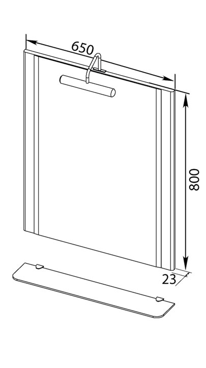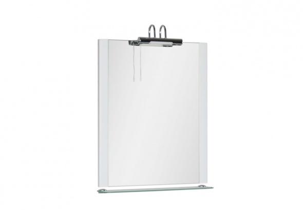 Навесное зеркало в ванную комнату Акванет Асти. Снабжено горизонтальной полкой и нависающим светильником.
