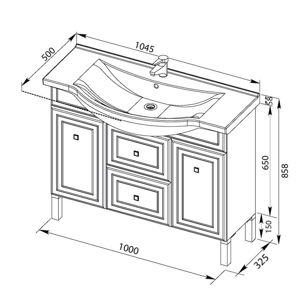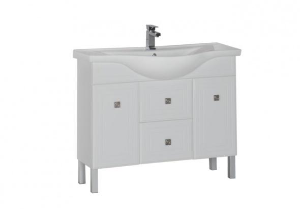 Тумба с раковиной Стайл — стильная и функциональная мебель для ванной комнаты, которая интересна своей демократичной ценой при эффектном визуальном воплощении. Тонкий геометричный рисунок на фасадах, подчеркивающий строгую форму тумбы, оттеняется красивыми, литыми ручками и гармонирует со строгими алюминиевыми ножками.