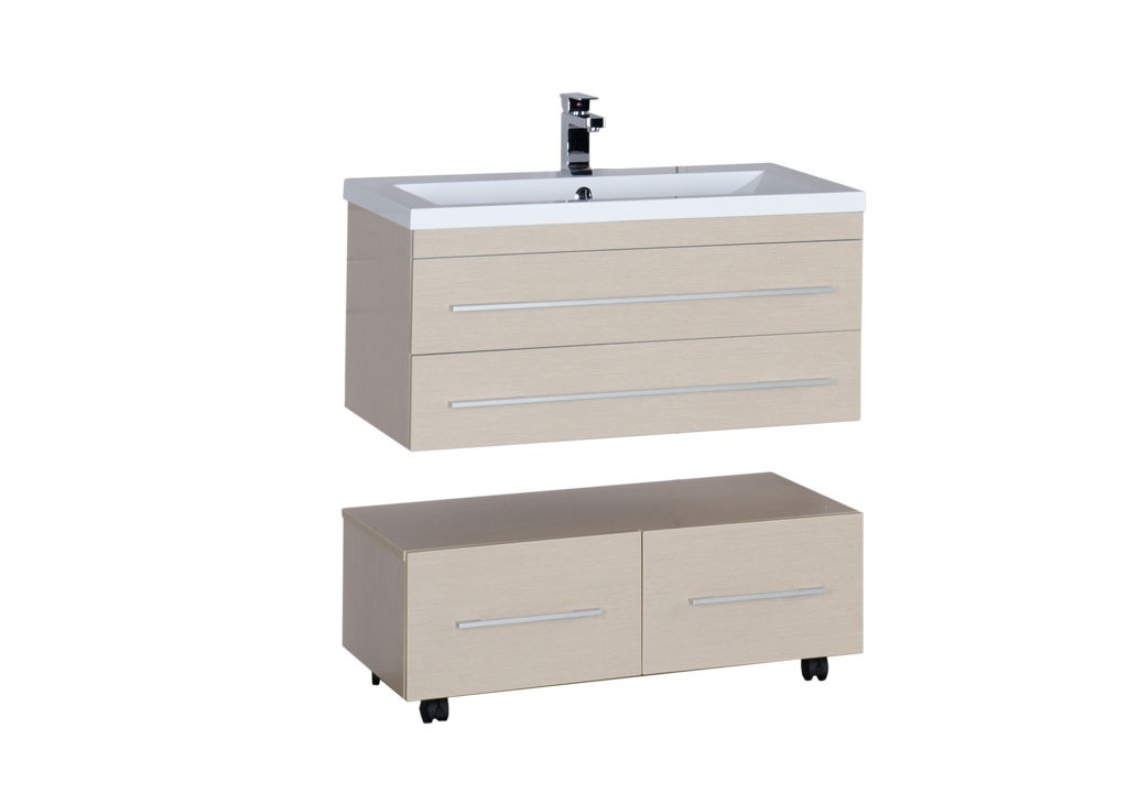 Навесная тумба Нота облегчает уборку благодаря отсутствию ножек и обеспечивает место для хранения бытовых средств в двух глубоких ящиках. Тумба представлена как часть набора мебели для ванной комнаты Акванет Нота 90, но может быть приобретена и отдельно. Дополните набор подкатной тумбой с выдвижным ящиком, которая одновременно может служить и зоной для хранения, и удобной подставкой.