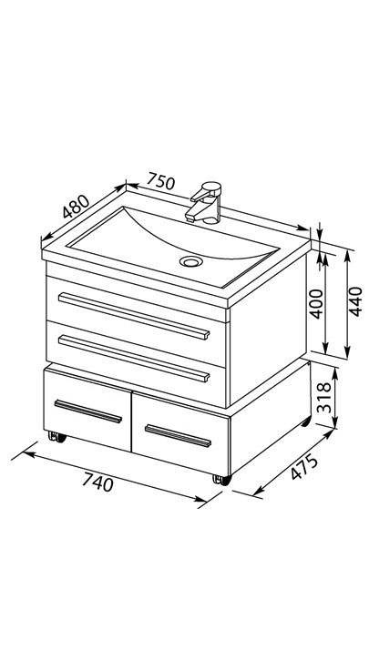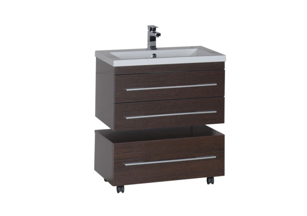 Навесная тумба Нота облегчает уборку благодаря отсутствию ножек и обеспечивает место для хранения бытовых средств в двух глубоких ящиках. Тумба представлена как часть набора мебели для ванной комнаты Акванет Нота 75, но может быть приобретена и отдельно. Дополните набор подкатной тумбой с выдвижным ящиком, которая одновременно может служить и зоной для хранения, и удобной подставкой.