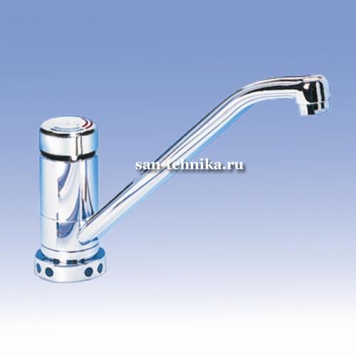 вода выключается после удаления рук из зоны чувствительности, время задержки выключения воды возможно настроить в диапазону 0,25 - 7,75 сек.