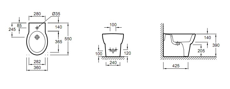 Напольное биде с одним отверстием для смесителя Ove E1705-00: - Плавные, обтекаемые линии позволяют идеально осуществить установку, а также создают идеальные условия для наилучшей гигиены - Классический дизайн: мягкие, круглые формы
