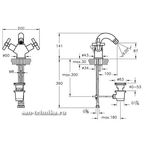 *арт. A40878EXP - Смеситель для биде - Тип: вентильный - Форма излива: традиционная - Система Pop-Up (донный клапан) - Длина излива: 100 мм - Высота излива: 87 мм - Специальный аэратор с ограничением потока воды: от 7,5 до 9 л/мин - Вес: 2,9 кг - Покрытие: хром