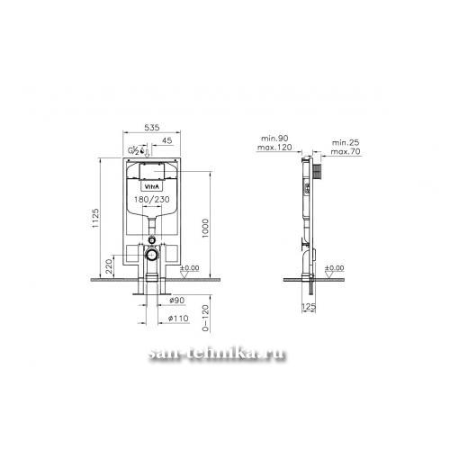 Главная > Инсталляции > Инсталляции Vitra > Инсталляция Vitra Slim 740-5800-02 система смыва на 2,5/4 л